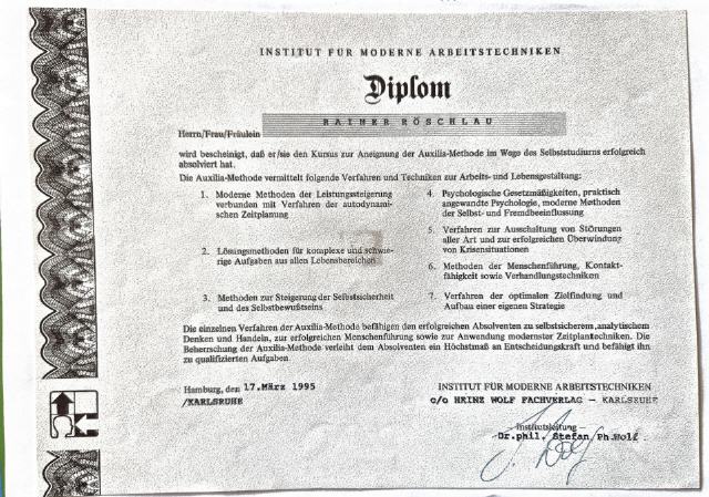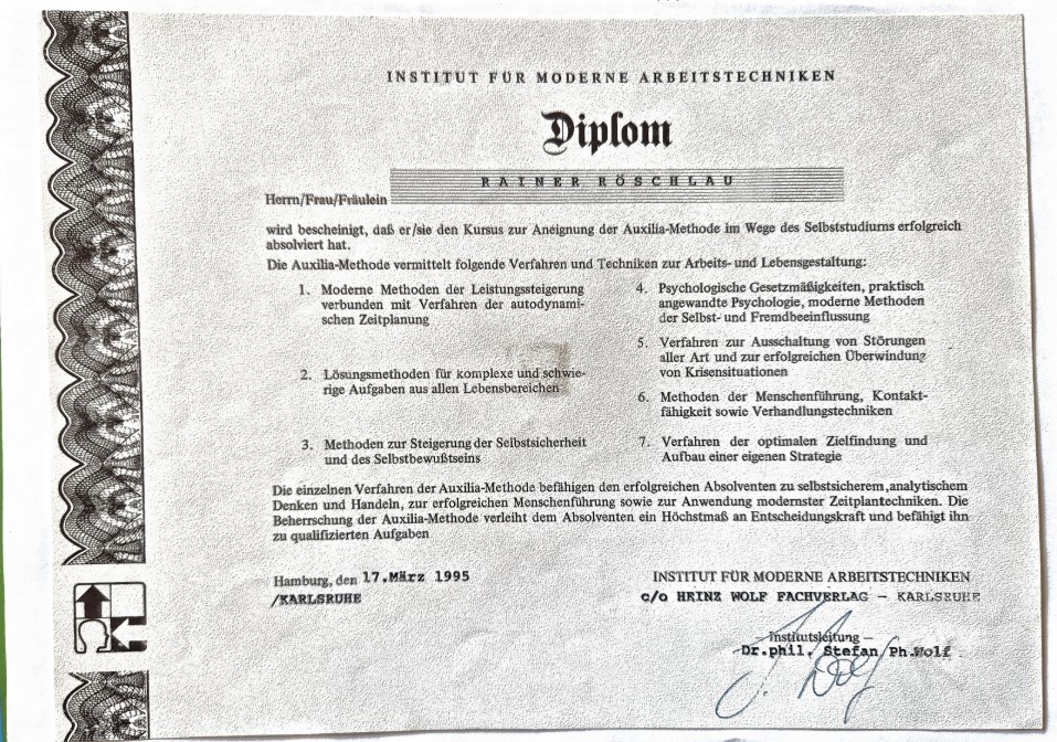 | 1968 - 1980 | Autolackiererei Röschlau (elterl. Betrieb) | Mitarbeiter, Betriebsleiter |